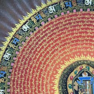 This Thangka radiates with vibrant symbolism and traditional craftsmanship. Its mandala pattern enhances spiritual focus and inner balance—ideal for daily meditation or sacred space enhancement.